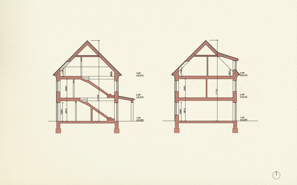 Projekt se nachází ve vesnici Hosov u Jihlavy, parcelní číslo 5/1. Na místě bývalého statku navrhujeme šest řadových domů. Čtyři domy, které se otáčejí do návsi mají na konci zahrady navržena 2 parkovací místa z čehož jedno z nich může být zastavěno garáží nebo přístřeškem .